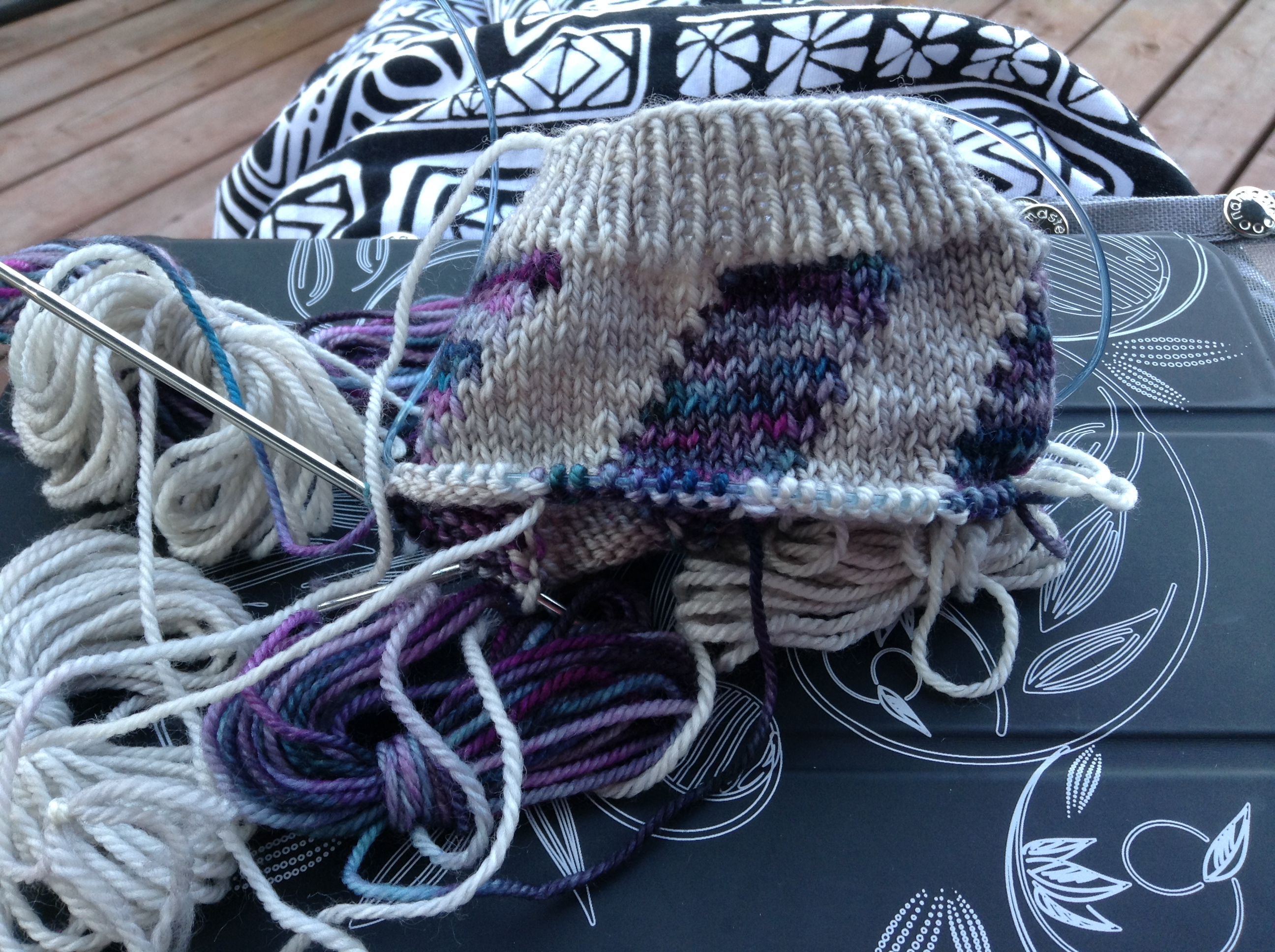 J’ai toujours voulu faire des bas avec des motifs en intarsia…….sauf que je déteste coudre (personne n’est surpris), donc je refusais simplement d’en tricoter. Il existait une méthode, qui fonctionnait, mais elle laissait une ligne visible. Étant légèrement perfectionniste…lol, cette méthode ne me satisfaisait pas……..